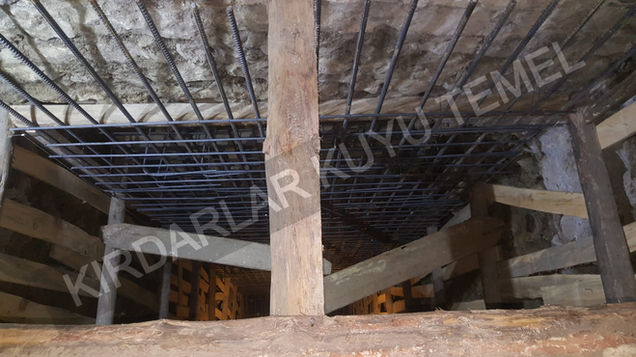 Projemizde derinliği 15m ve 8m arasında değişen toplamda 35 adet kuyumuz bulunmaktadır. Projemiz de bulunan kuyu temel imalatına başlamadan önce şantiye sahasının hafriyat alımını kuyu temel imalatına en uygun şekilde yapılmasını gerçekleştirdik. Daha sonra kuyu temel imalatı için haritacılardan köşe noktaları alındı. Kuyuların imalatına en doğru kuyulardan başlamak için projedeki ölçülerden yardım alındı ve ilk (ana kuyular) kuyuların kazımına bir dolu bir boş şeklinde başladık. İlk kuyuların kazımı sonrası demir donatılar projeye uygun bir şekilde bağlandı ve beton dökümü gerçekleşti. Projenin devamında ilk kuyuların yanları (yarım ana) kuyuların kazımı gerçekleşti ve böyle böyle bütün kuyular bir birine bağlanarak kuyu temel imalatı tamamlanmış oldu.